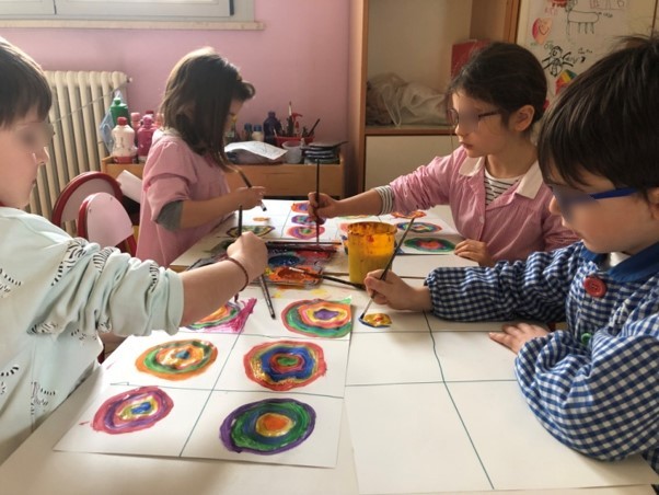 I bambini hanno accolto il progetto con entusiasmo e coinvolgimento sia per la possibilità di usare il colore in modo creativo sia per la possibilità di osservare, conoscere e riprodurre liberamente alcune opere d’arte.